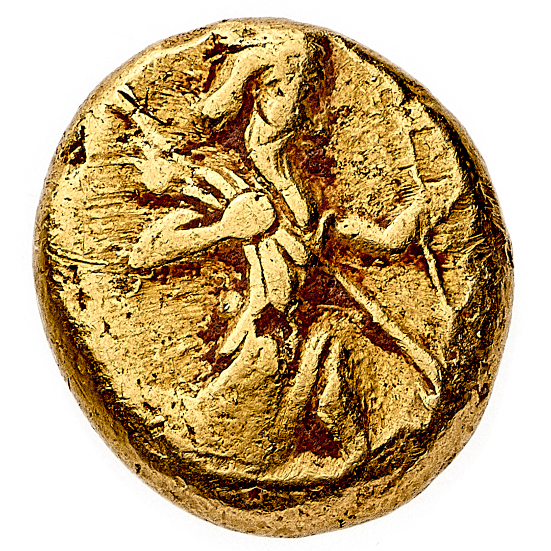 Dario I e Serse II (485-420 a.C.) - Darico in oro - Diritto: Re persiano inginocchiato a destra tiene una lancia con la mano destra e un arco con la sinistra - Rovescio: punzonatura in incuso - gr. 8,32 - Rara - BB