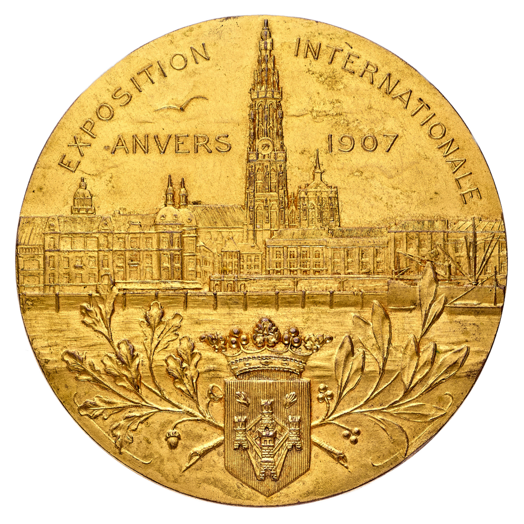 Belgio - Leopoldo II (1865-1909) - Medaglia 1907 per l' Esposizione Internazionale di Anversa - Diametro mm. 59 e peso gr. 75,27 - q.SPL