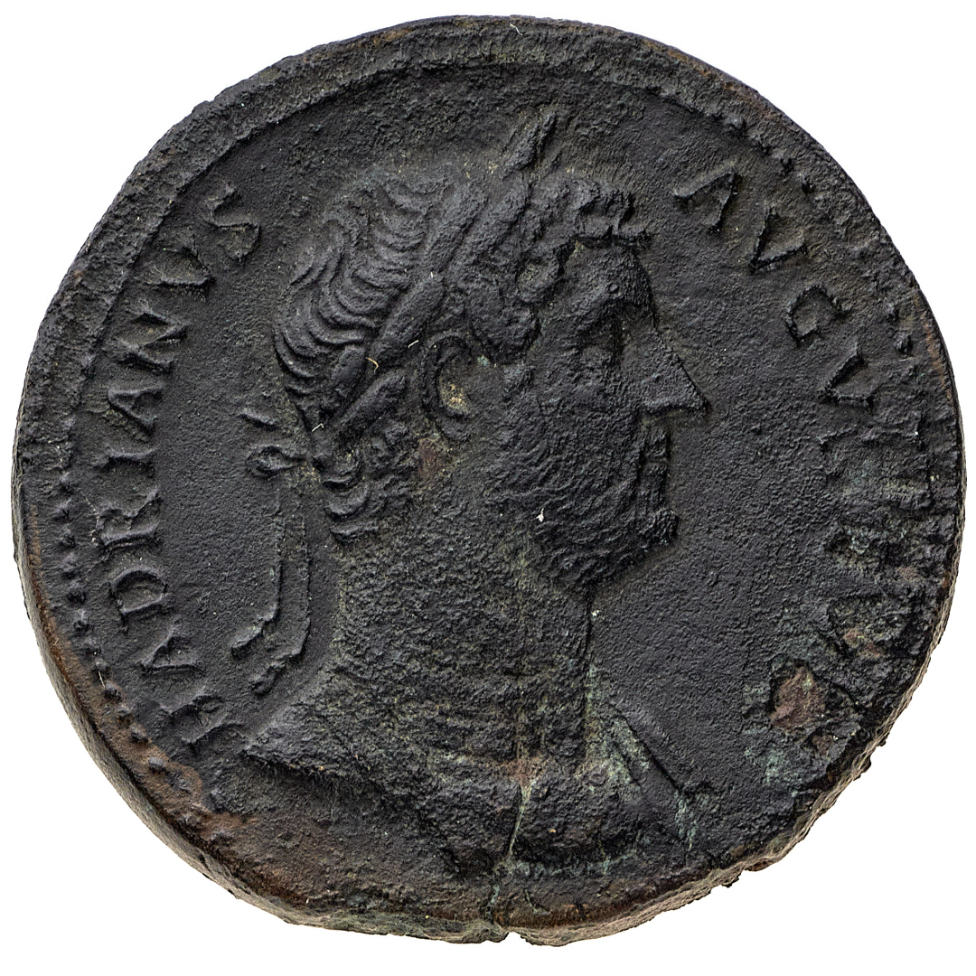 Sesterzio databile al periodo 132-134 d.C. - Zecca: Roma - Diritto: busto laureato e corazzato dell'Imperatore a destra - Rovescio: nave verso sinistra con timonieri e rematori - gr. 23,47 - Lievi depositi e fratture di conio, BB