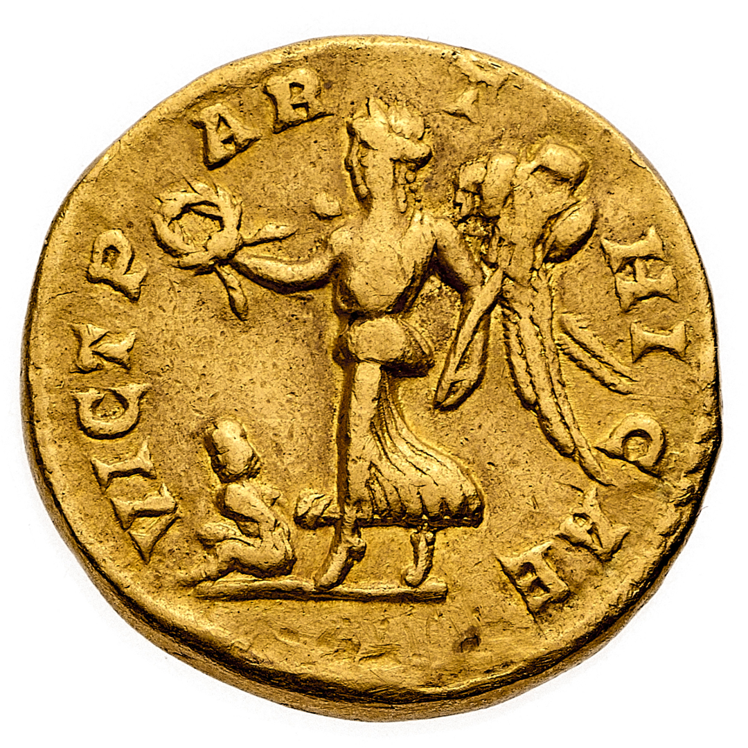 Aureo databile al periodo 198-200 d.C. - Zecca: Roma - Diritto: busto laureato, drappeggiato e corazzato dell'Imperatore a destra - Rovescio: la Vittoria in cammino verso sinistra tiene una corona di quercia con la mano destra e un trofeo con la sinistra; ai suoi piedi, a sinistra, un prigioniero - gr. 7,33 - Rara - Segni sul contorno e lievi tracce di montatura, altrimenti BB - Proveniente dall'asta NAC 78, Zurigo 26.5.2014, n. 2320