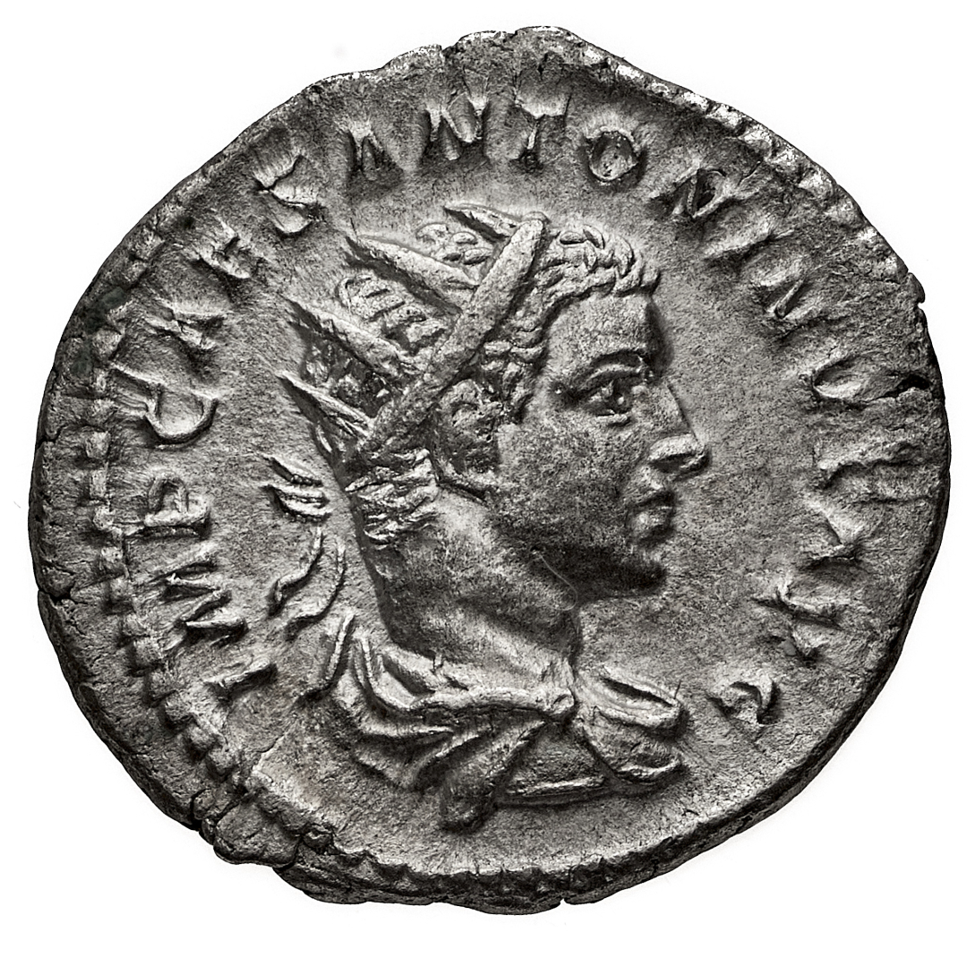 Antoniniano - Zecca: Roma - Diritto: busto radiato, drappeggiato e corazzato dell'Imperatore a destra - Rovescio: la Salus stante a destra nutre un serpente che tiene tra le mani - gr. 3,93 - q.SPL