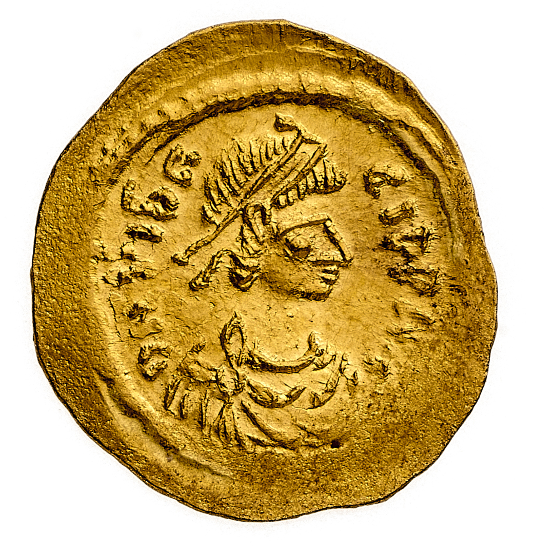Maurizio Tiberio (582-602) - Tremisse databile al periodo 583-602 - Zecca: Costantinopoli - Diritto: busto diademato e drappeggiato dell'Imperatore - Rovescio: croce potenziata - gr. 1,47 - Lievi debolezze di conio, ma con fondi ancora lucenti, SPL