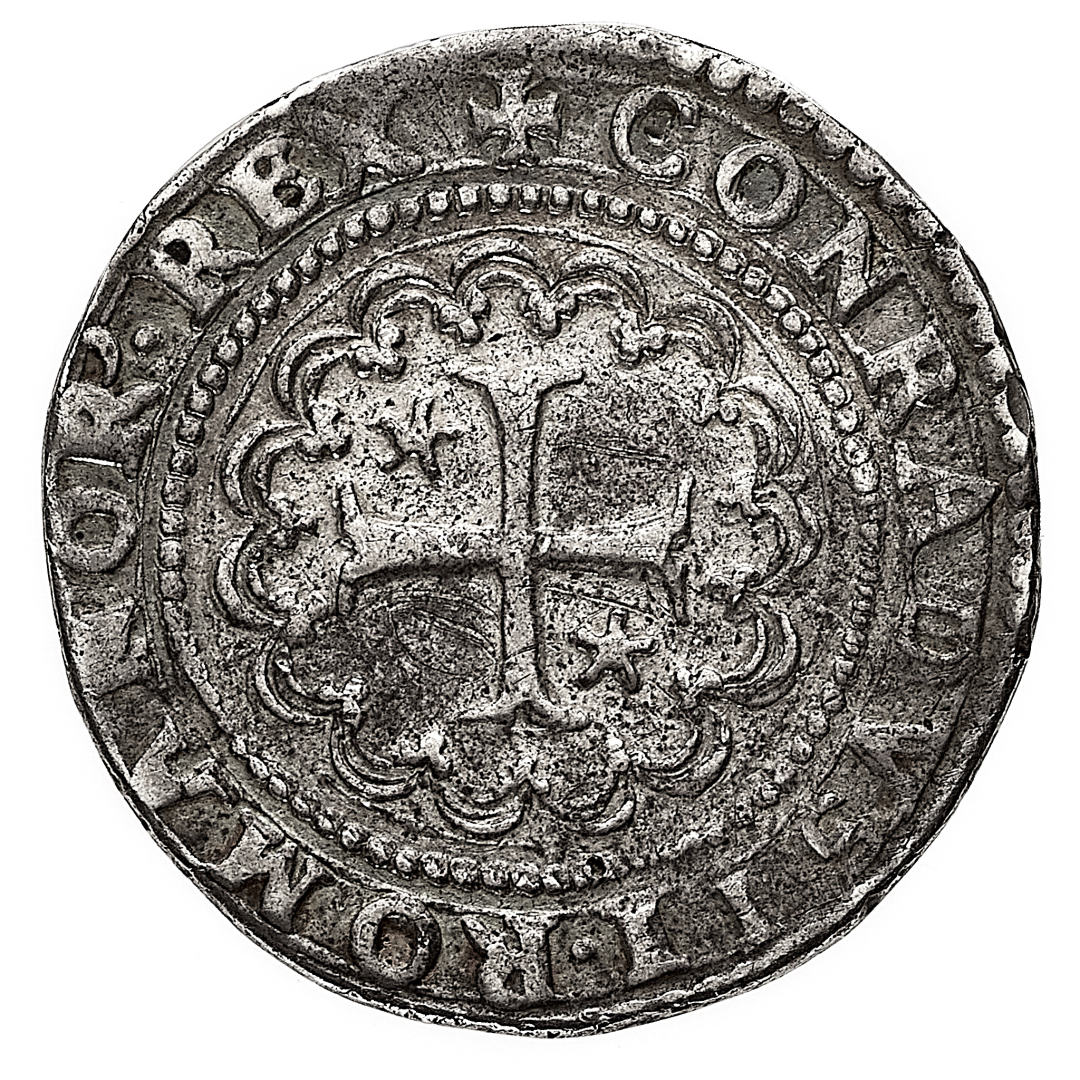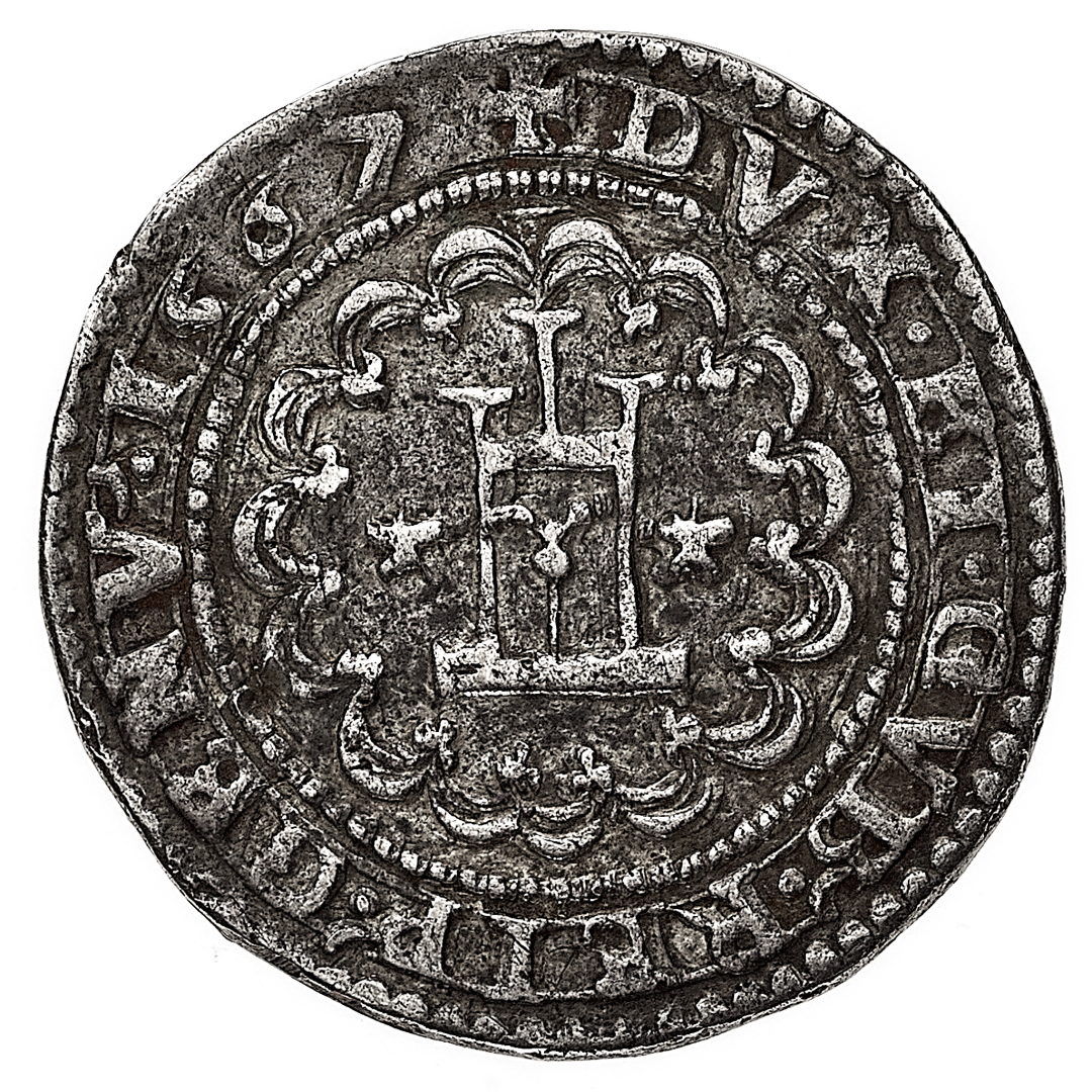 Governo dei Dogi Biennali (1528-1797) - Ottavo di Scudo 1567 - Diritto: castello entro cornice d'archi, accostato da due stellette - Rovescio: croce patente accantonata da stellette entro cornice d'archi - gr. 4,46 - Non comune - Patina di medagliere, migliore di BB - Proveniente dalla Collezione Pesce, asta Christie's, Milano 9-10.6.2003, n. 231