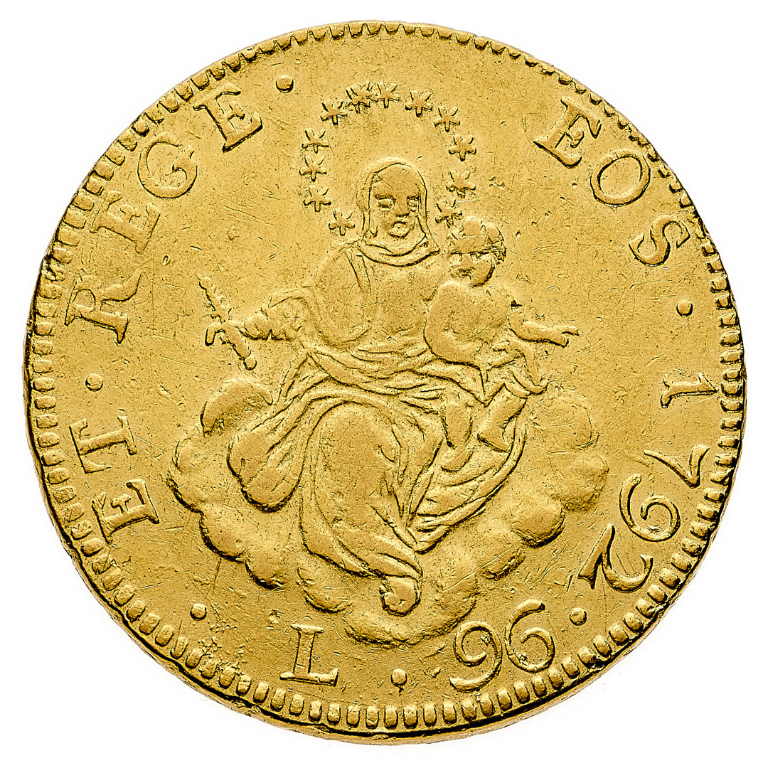 Governo dei Dogi Biennali (1528-1797) - 96 Lire 1792 - Diritto: due grifoni reggono lo stemma della Repubblica e la corona sovrastante - Rovescio: la Vergine con il Bambino - gr. 25,18 - Rara - q.SPL