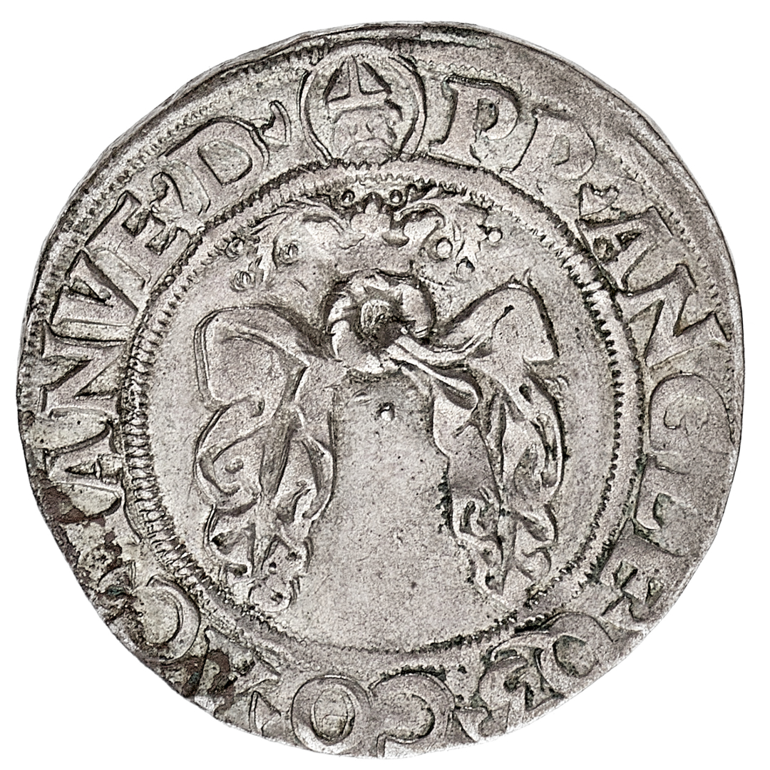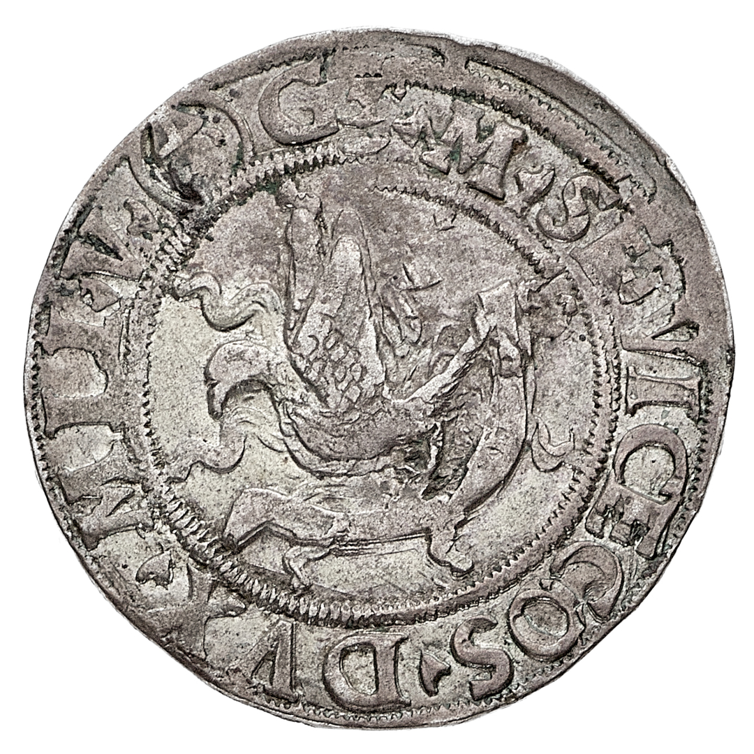 Galeazzo Maria Sforza (1466-1476) - Grosso da 4 Soldi - Diritto: colomba in volo con un nastro - Rovescio: velo annodato e sormontato da una corona dalla quale escono due rami d'alloro e di ulivo - gr. 2,72 - Migliore di BB - Corredata dal cartellino di Oscar Rinaldi