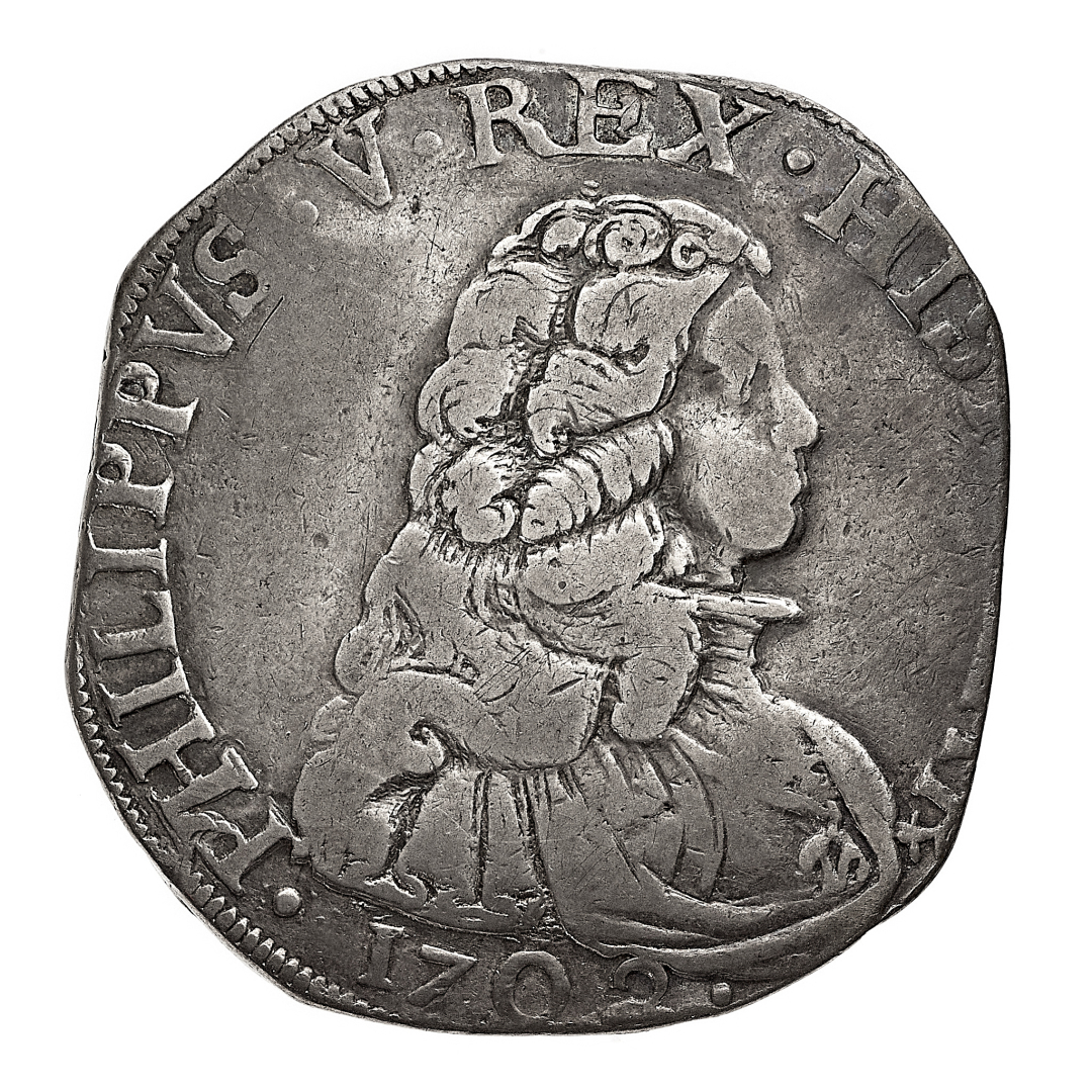Filippo V di Borbone (1700-1713) - Filippo 1702 - Diritto: busto paludato e corazzato di Filippo V a destra - Rovescio: stemma di Spagna coronato e caricato dello stemma di Milano - gr. 27,55 - Rara - BB