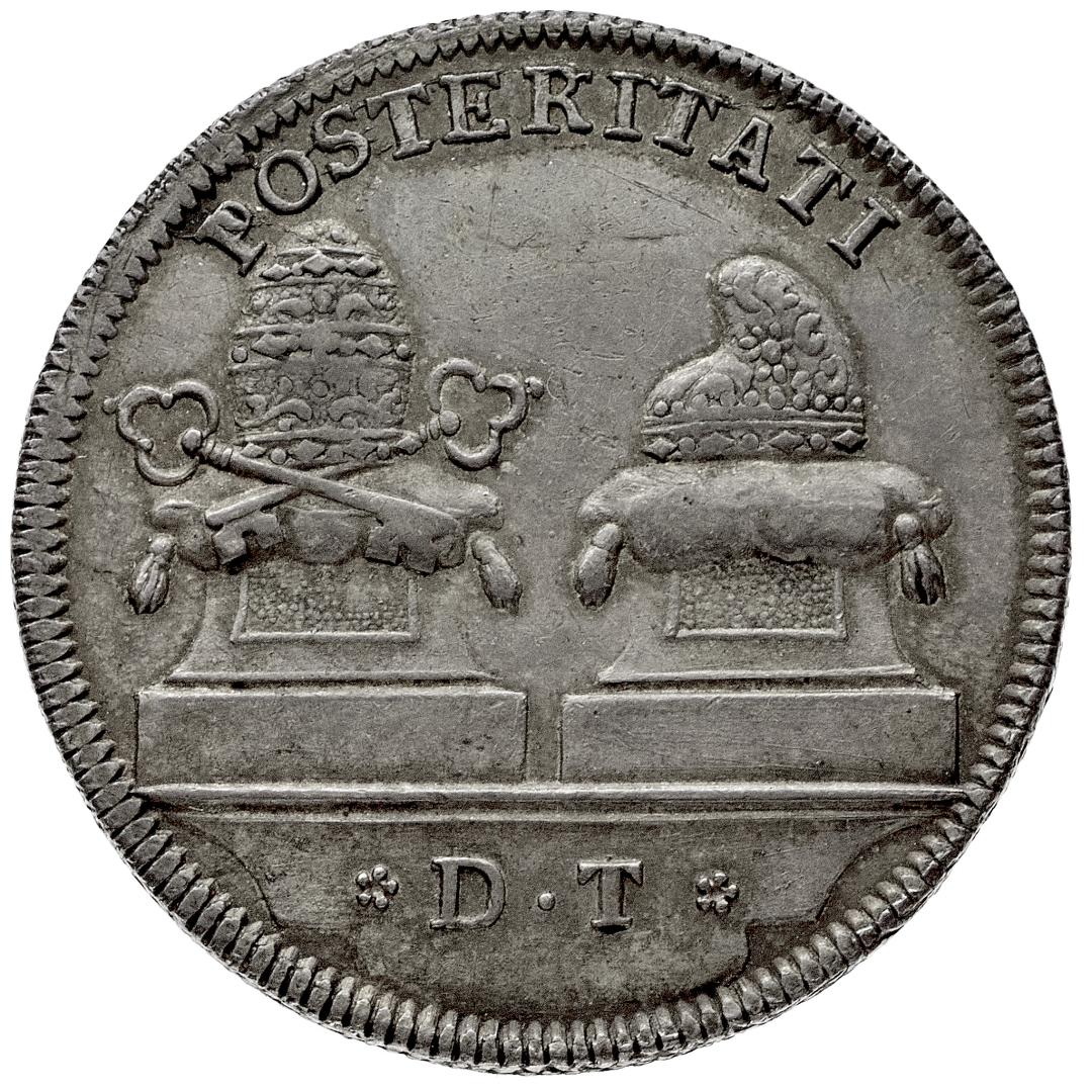 Paolo Renier (1779-1789) - Osella 1782 Anno IV - Zecca: Venezia - Diritto: triregno con chiavi decussate e corno doganale, morbidamente adagiati su cuscini impreziositi da fiocchi agli angoli, a loro volta posti su due cippi affiancati - Rovescio: legenda e data in cinque righe orizzontali entro corona di alloro - gr. 9,77 - Splendida patina di antica collezione, SPL