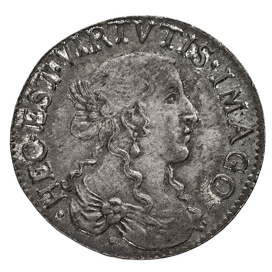 Maria Maddalena Centurioni Malaspina (1666-1671) - Luigino 1666 - Diritto: busto muliebre di donna a destra - Rovescio: stemma coronato - gr. 2,07 - Splendida patina con riflessi lucenti, SPL