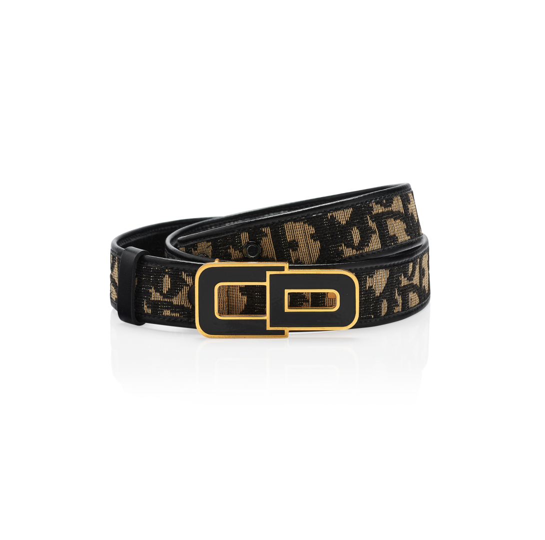 iconic black Dior Jacquard, black leather edge and back. Iconic black and gold enamel buckle.