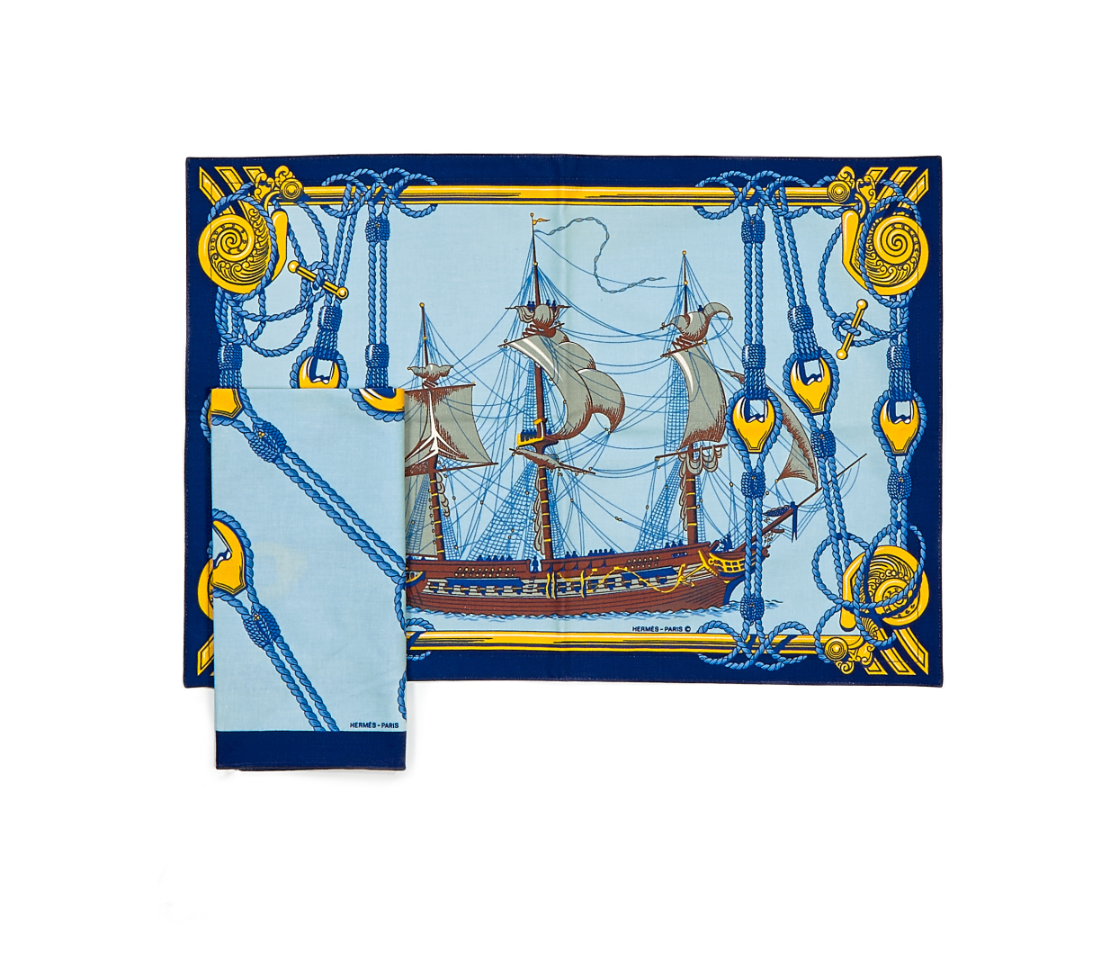 HERMÈS "Tribord" American placemat and napkin set 90s