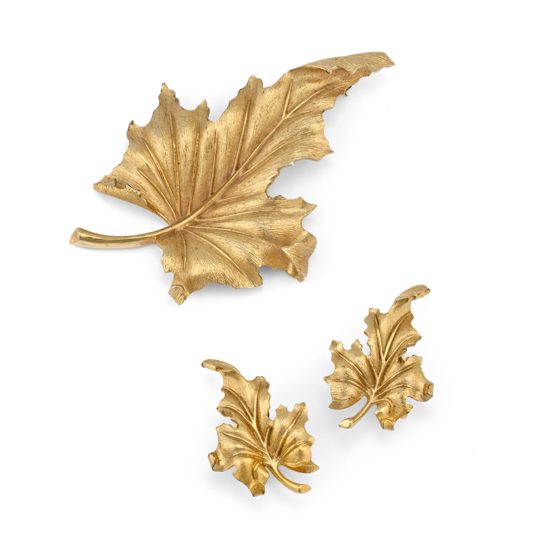 Trifanium alloy, composed of brooch and pair of clip earrings.