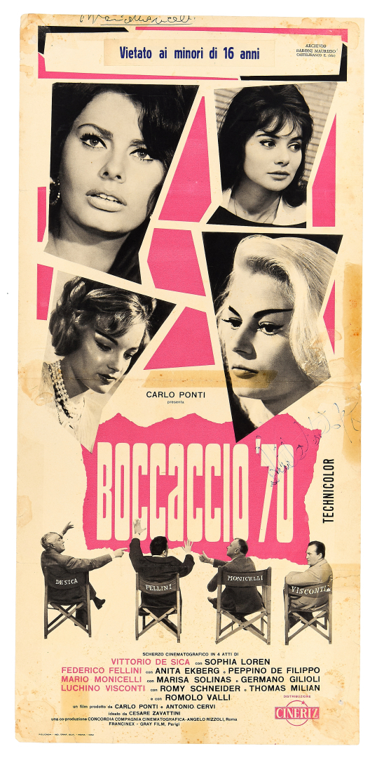 Bearing the autograph signatures of Mario Monicelli and Anita Ekberg.