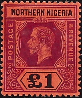 1912 - Giorgio V 1 £ violetto e nero su carta rossa