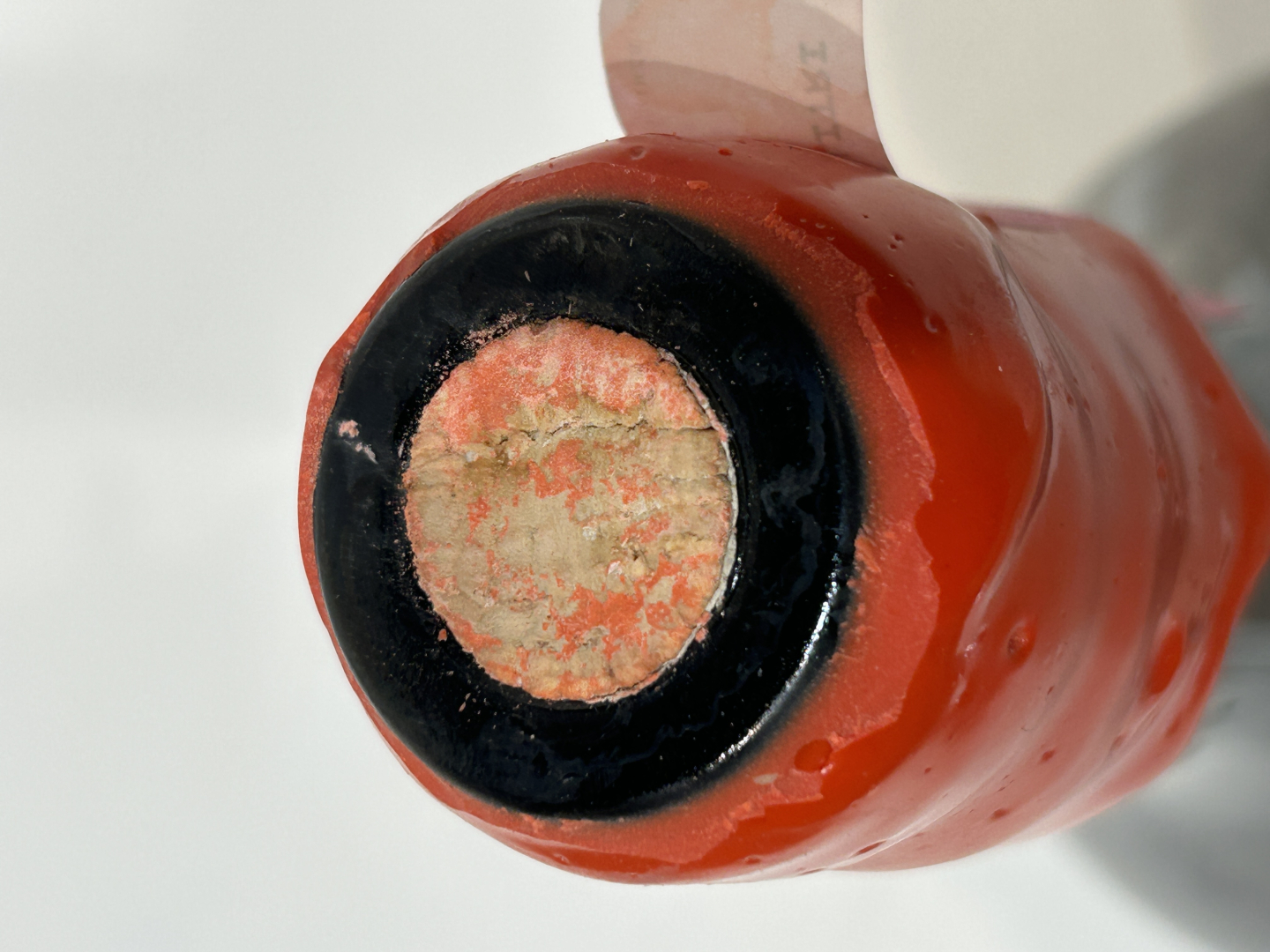 Soiled label, broken wax, original wooden case