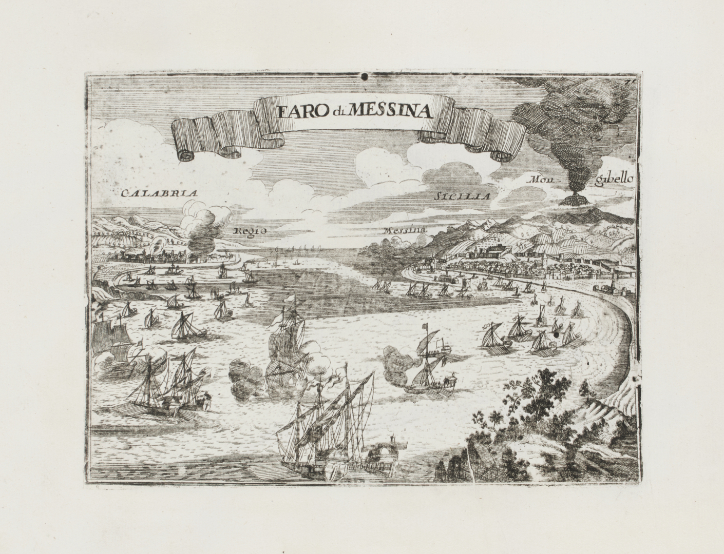 In 4° oblungo (195 x 272 mm); 16 parti in 1 volume. Lombardia: 6 carte, vedute e piante di cui 1 mappa geografica ripiegata più volte e 1 carta di testo come da Indice; Piemonte: 21 carte, vedute e piante e 2 carte di testo con la Pianta di Vercelli due volte (manca Pinarollo città in pianta); Savoja: 12 carte, vedute e piante come da Indice; Provenza: 5 carte, vedute e piante come da Indice più il Contado di Nizza non elencato; Milanese: 40 carte, vedute e piante e 2 carte di testo con lo Stato di Milano non indicato nell'Indice ma mancante del Castello d'Alessandria; Mantova: Ritratto del duca di Mantova ripiegato e 7 carte, vedute e piante, 1 carta di testo come da Indice; Monferrato: 6 vedute e 1 carta di testo come da Indice; Parmegiano: Ritratto del Duca di Parma ripiegato e 7 carte, vedute e piante come da Indice; Modena: 6 carte, vedute e piante come da Indice; Stato Ecclesiastico: 2 occhietti, e 37 carte, vedute e piante, in parte ripiegate; Umbria: Occhietto, e 33 vedute e piante, in parte ripiegate; Marche: Occhietto, 1 ritratto e 3 vedute e piante; Urbino: Occhietto e 25 carte, vedute e piante, in parte ripiegate; Regno di Napoli: 62 carte, vedute e piante, in parte ripiegate, e 1 carta di testo con due vedute di più rispetto all'Indice ma mancante di Posilippo, Veduta di Pozzuoli, Castelio, Castell'à Mare di Stabbia e delle Isole di Tremiti; Sicilia e Malta: 22 carte, vedute e piante, in parte ripiegate, e 2 carte di testo; rispetto all'Indice mancano il Ritratto del Gran Mastro di Malta e una Pianta di Malta più distinta ma ci sono due tavole di blasoni (piccoli difetti.) Legatura coeva in mezzo vitellino con titolo in oro su tassello al dorso, tagli a spruzzo rosso.