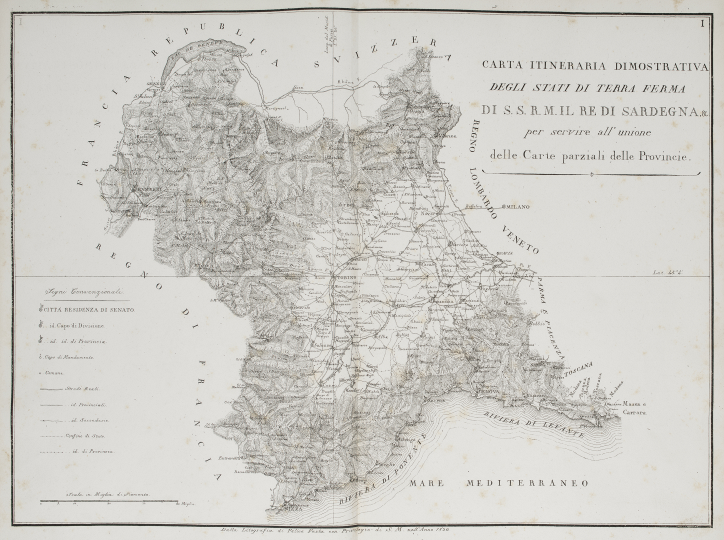 [Savoia]. Atlante itinerario delle provincie di Terra Ferma di S.S.R.M. il re di Sardegna eseguito d'ordine dell'azienda economica dell'interno. Torino, Litografia Festa, 1820.