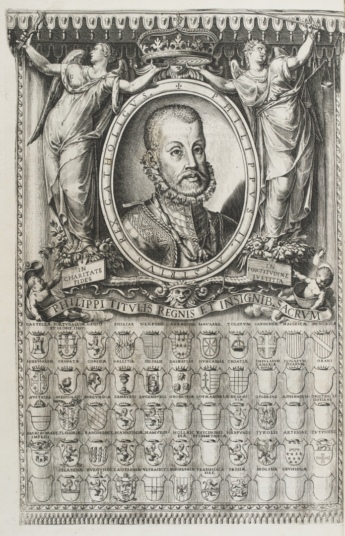 In 2° (407 x 265 mm); [8], 88, lxxviii, [2], 89-119, [29] pagine. Frontespizio allegorico con al verso ritratto di Filippo II in medaglione senza berretto e 55 piccoli scudi con le armi degli Stati appartenenti alla corona di Spagna, apoteosi di Cremona al verso della seconda carta, ritratto di Antonio Campo, figura con l’uscita del Carroccio dalla porta di Cremona, 9 ritratti di vescovi o di altri personaggi illustri, 24 ritratti in ovale dei duchi e duchesse di Milano con il ritratto di Filippo con berretto, 4 tavole fuori testo raffiguranti la pianta di Cremona ripiegata più volte e datata 1582, la carta del Contado e Diocesi di Cremona a doppia pagina e 1 tavola con il Duomo a doppia pagina e al verso il Battistero e sua pianta, e la torre e sua pianta, incisi in rame da Davide da Lodi, testo entro cornice xilografica (piccolo restauro a una piega nella pianta di Cremona.) Legatura del secolo XVIII in pelle spugnata con triplice filettatura e fleurons angolari ai piatti, fregi fitomorfi e titolo in oro al dorso, unghiatura, labbri e tagli dorati (cerniere deboli, piccole mancanze alle cuffie). Ex libris dei conti Doria di Montaldeo.