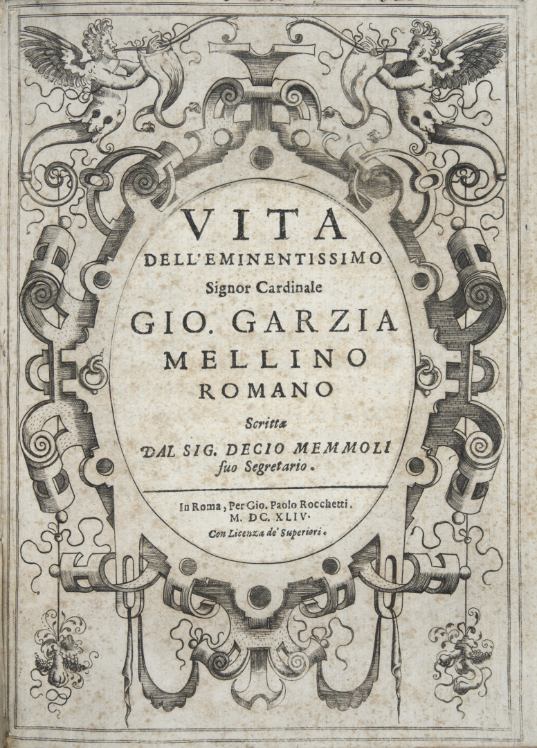 [Biografia]. Memmoli, Decio. Vita dell'eminentissimo signor cardinale Gio. Garzia Mellino. Roma, Giovanni Paolo Rocchetti, 1644.