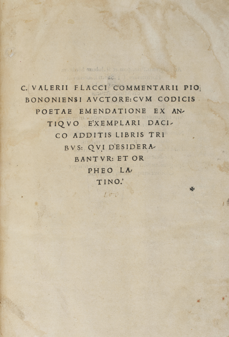 C. VALERII FLACCI COMMENTARII PIO BONONIENSI AUCTORE ... ET ORPHEO LATINO.