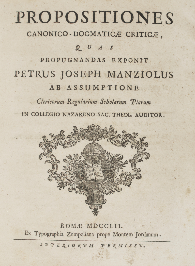 MANZIOLI, PROPOSITIONES CANONICO DOGMATICAE CRITICAE, 1752
