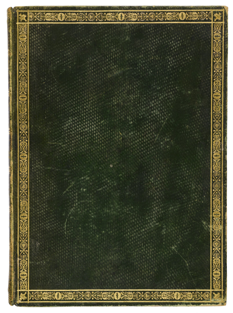Esemplare marginoso di questa prima edizione, popolarissima agiografia in età medievale, ispirata alla vicenda della conversione del Buddha. Nel lotto anche una bella legatura del XIX secolo (328 x 235 mm), verosimilmente da attribuire a Lodigiani, in pieno marocchino verde zigrinato, dorso e piatti con ricche dorature, tagli dorati, che contiene In morte di Ugo Basseville cantica del cav. Vincenzo Monti nell'edizione milanese di Luigi Cairo del 1825.