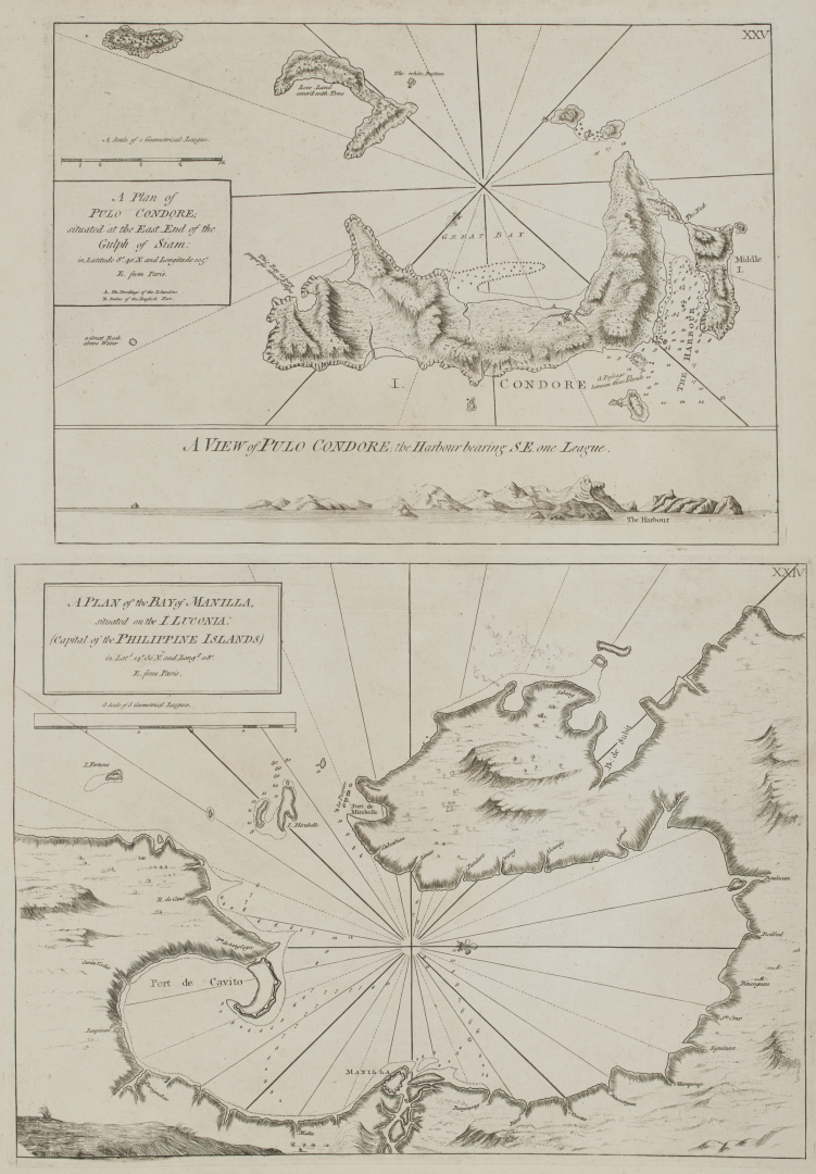 Rarissimo atlante nautico del cartografo inglese William Herbert (1718-95) che si basa sul "Neptune Oriental" francese. Herbert che viaggiò in India intorno al 1748 come impiegato di un commissario di bordo, iniziò la sua attività editoriale cartografica alla fine degli anni '40, quando aprì una cartografia e una tipografia sul London Bridge. Nel 1758, con l'incoraggiamento della Compagnia delle Indie Orientali, introdusse una nuova guida intitolata A New Directory for the East Indies. Herbert raccolse fonti di qualità superiore a quelle utilizzate fino a quell'epoca. Di particolare attenzione la carta dedicata alla navigazione Malacca-Singapore, che rappresenta la prima carta nautica britannica ampiamente accurata della rotta marittima più trafficata dell'Asia. Segna una pietra miliare nella rinascita dell'idrografia sponsorizzata dalla Compagnia delle Indie Orientali e una carta chiave utilizzata durante l'ascesa del potere economico e politico britannico nel Sud-est asiatico e nell'Estremo Oriente.
