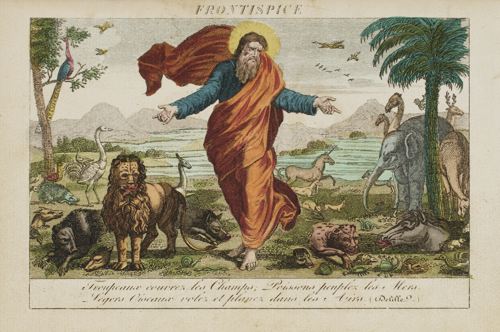 [Illustrati]. Seconda edizione della Bible en Estampes à l’usage de la Jeunesse nell'edizione di Parigi di Alexis Eymery del 1822 con vignetta al frontespizio, antiporta incisa e 64 figure incise su 16 tavole, il tutto finemente colorato da mano coeva, entro legatura coeva in mezza pelle con titolo in oro al dorso.