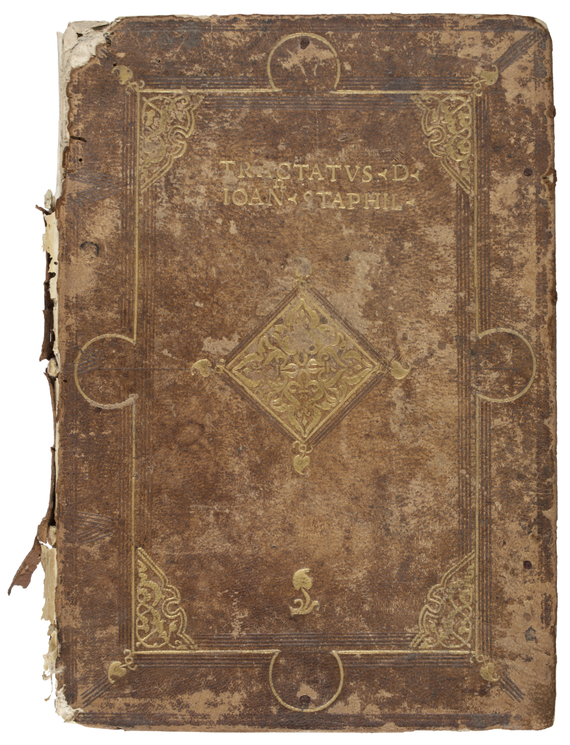 [Legatura]. Legatura rinascimentale in pelle color nocciola con decorazione in oro e a secco (252 x 175 mm) che contiene un esemplare molto marginoso, in parte postillato da mano coeva, della prima edizione Tractatus de gratiis expectatiuis di Giovanni Stafileo nell'edizione veneziana di Michele Tramezzino del 1540 (mancanze e difetti alla legatura). Nel lotto anche un Breviarium Romanum del 1770 in bella legatura coeva con grande supra libros e decorazione in oro ai piatti, un volume Missae in agenda defunctorum del 1684 in legatura coeva in pelle color testa di moro con decorazione mariologica ai piatti, e un altro Breviarium Romanum del 1692 in legatura con borchie e presente un fermaglio.