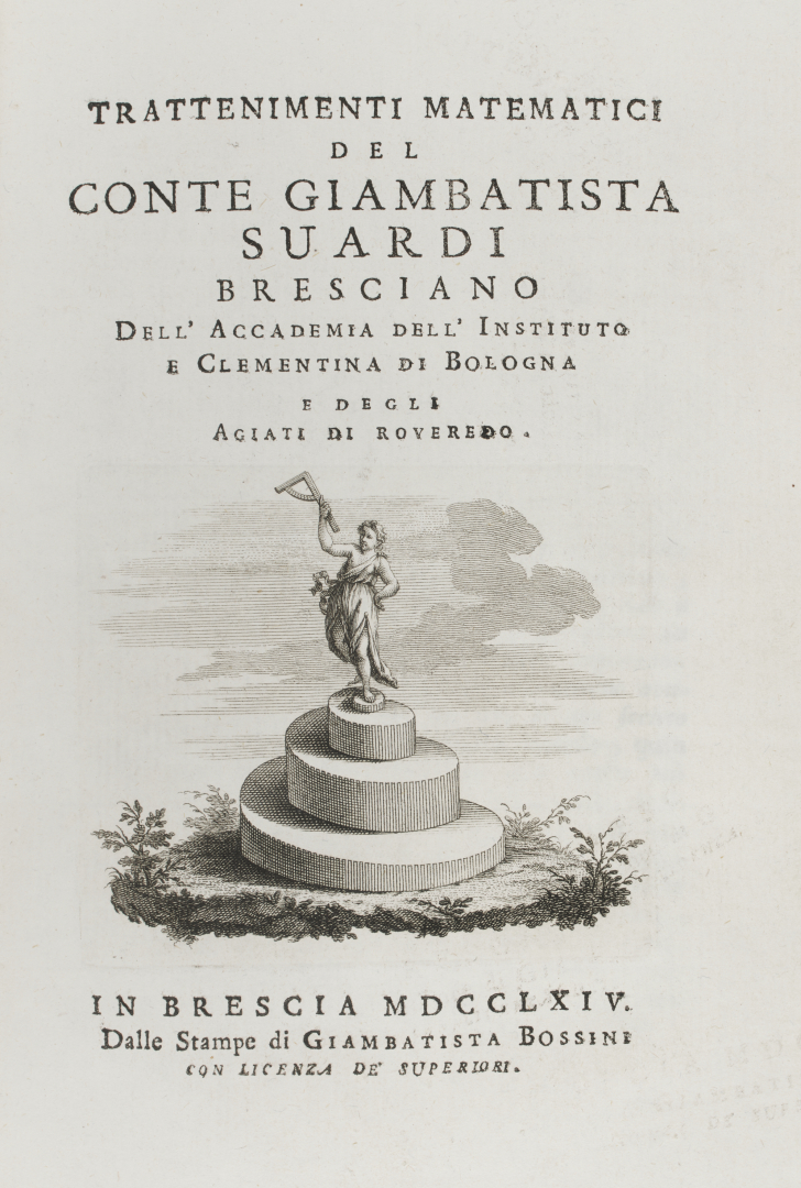 [Legatura]. Suardi, Giambattista. Trattenimenti matematici del conte Giambatista Suardi bresciano. Brescia, Giovanni Battista Bossini, 1764.