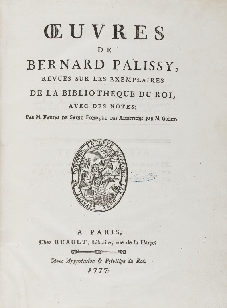 Palissy, Bernard. Oeuvres. Parigi, Ruault, 1777.
