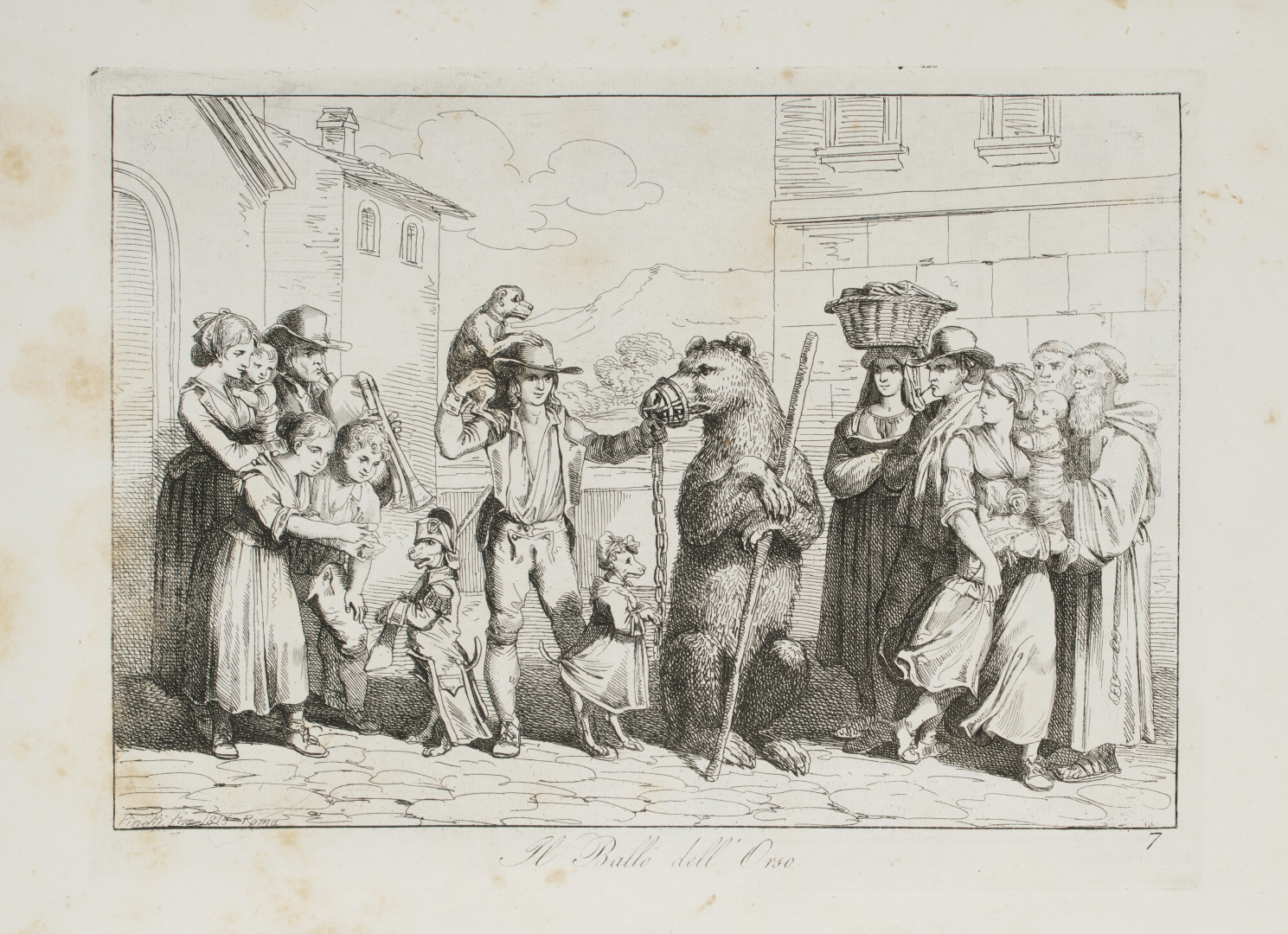 [Costumi - Roma]. Album che contiene la Nuova raccolta di cinquanta costumi pittoreschi incisi all'acquaforte da Bartolomeo Pinelli nell'edizione romana del 1816 (qualche fioritura), entro legatura coeva in mezzo marocchino a grana lunga.
