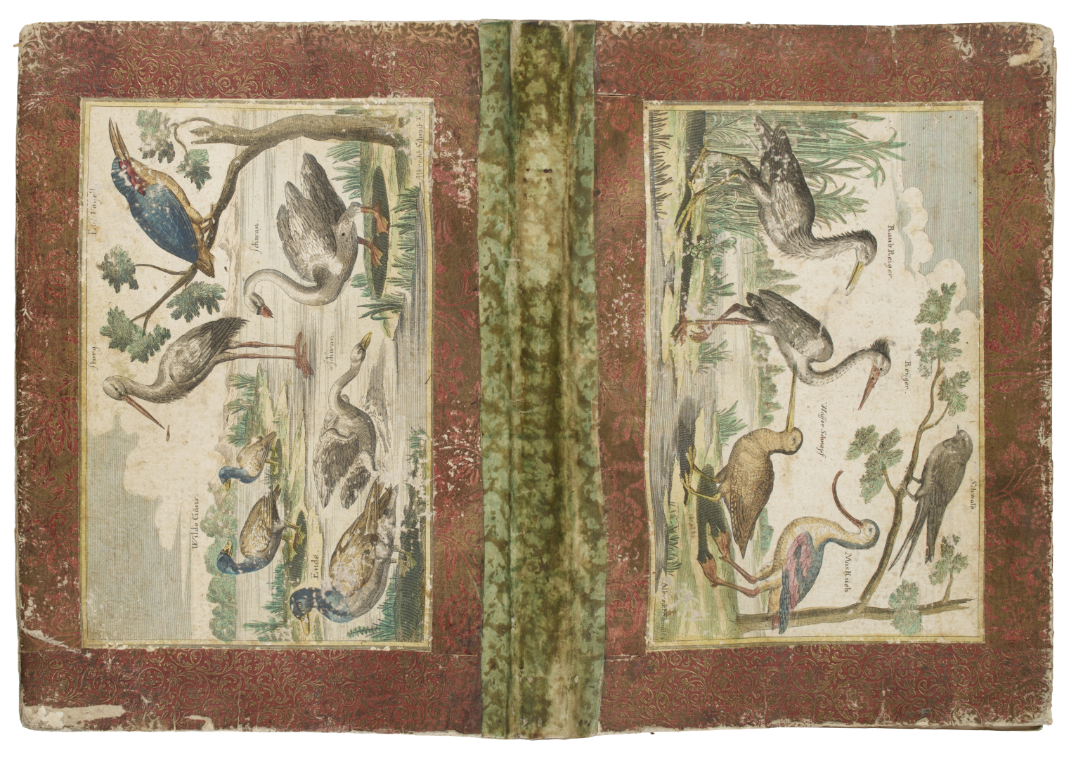 [Mariette]. Album che contiene 84 tavole incise in rame di Jean Mariette (1660-1742), in gan parte pubblicate a Parigi presso Mariette stesso, Poilly e Bonnart. Legatura (368 x 258 mm) in carta xilografata con applicate due tavole ornitologiche colorate a mano (dorso anticamente restaurato). Mariette nel corso della sua carriera pubblicò quasi 900 stampe di dipinti di artisti come Nicolas Poussin, Domenico Zampieri, Charles Le Brun, Michel Corneille il Giovane, Louis Chéron, Antoine Dieu, Guido Reni, A. Caracci, Sébastien Bourdon, Giovanni Contarini e Anthony van Dyck.