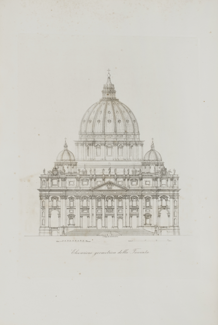 [Roma]. Seconda edizione della sontuosa opera Italia monumentale o Galleria Artistica delle principali fabbriche antiche e moderne d'Italia di Vincenzo De Castro nell'edizione milanese di Pietro Moretti del 1870 con frontespizio cromolitografica a colori dell'"Opera premiata dal VI Congresso Pedagofico di Torino 1869. e Dedicata alle AA.RR. i Principi Umberto ed Amedeo di Savoja" con 167 tavole dedicate a Roma (numero delle tavole tende a variare da copia a copia), entro legatura coeva in mezzo vitellino color nocciola con fregi e titolo in oro al dorso liscio.