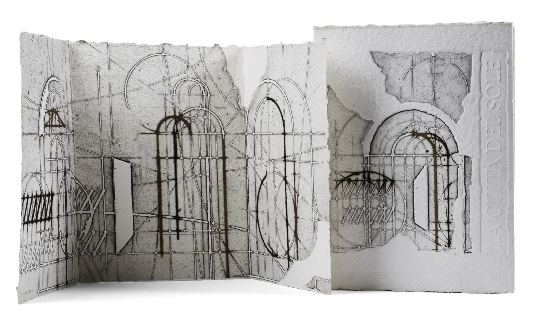 [Libro d'artista]. Campanella, Tommaso , e Walter Valentini. La città del sole. Lodi, Giampiero Zazzera, 1987.