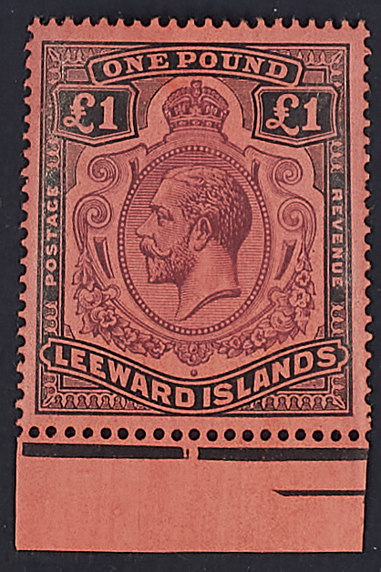 GIORGIO V 1 £. VIOLETTO E NERO SU CARTA ROSSA BORDO DI FOGLIO INFERIORE