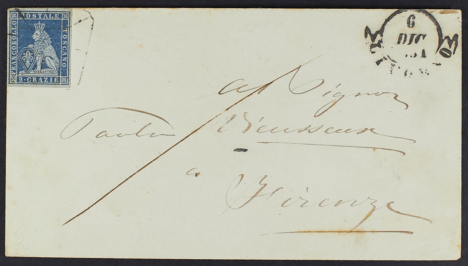 1851/58 - Tre lettere ciascuna affrancata con un valore da 2 cr. - Firma Oliva