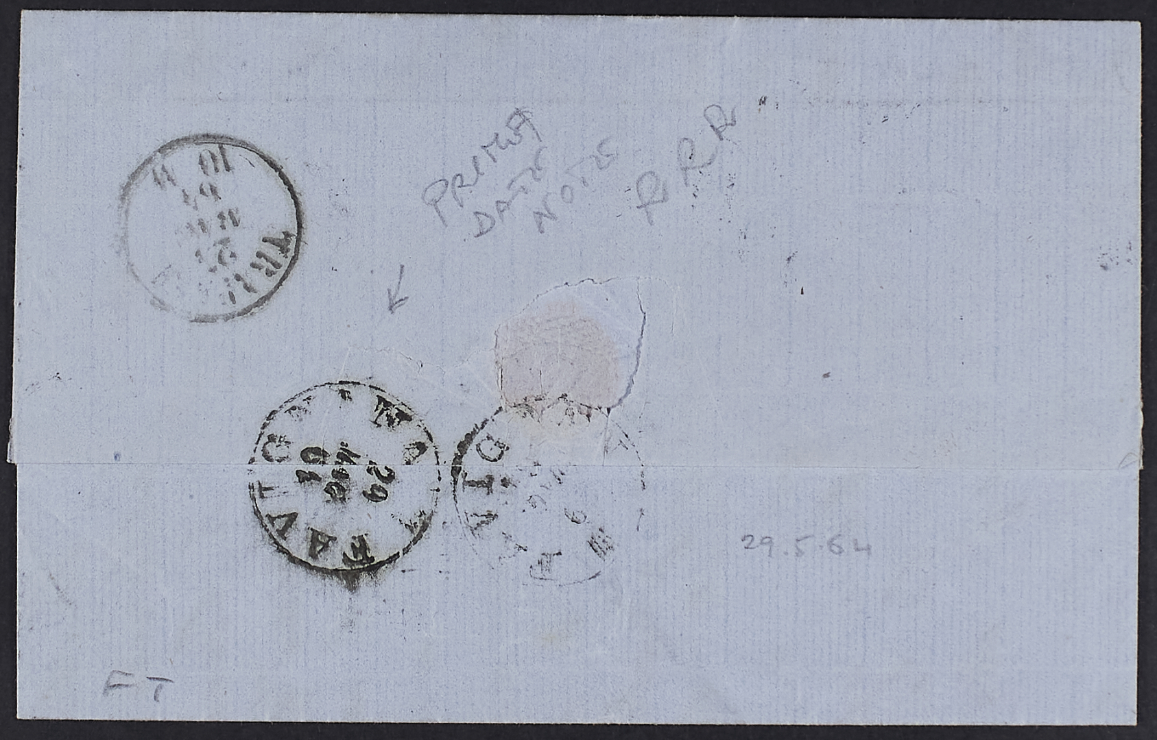 1864 - Favignana - Cerchio (29 maggio) impresso in arrivo al verso di lettera da Palermo del 24 maggio affrancata con Regno definitiva 15 c. - Molto raro e prima data d'uso