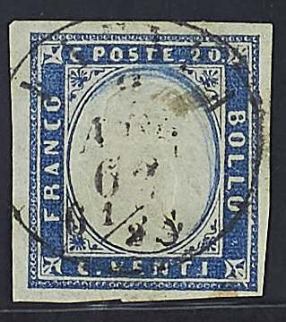 1855 - 20 c. celeste con doppia effigie di cui una capovolta - Raro - Cert. Cert. Bottacchi e Diena