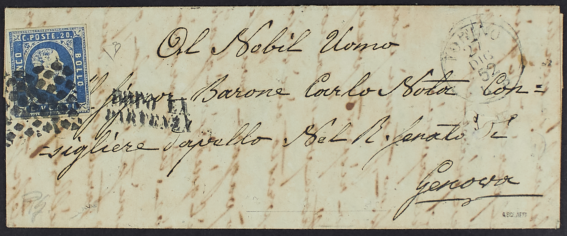 1851 - 20 c. azzurro - Tre lettere viaggiate nel 1852/53 - Da esaminare - Timbro Bolaffi