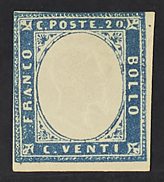 1855 - 20 c. cobalto - Raro - Cert. Raybaudi