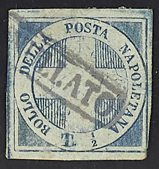 1860 - "Croce" 1/2 t. azzurro - Da esaminare - Cert. Avi