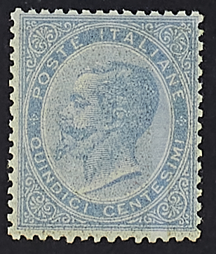 1863 - Definitiva 15 c. celeste - Esemplare di notevole freschezza - Firme Giulio Bolaffi e Sorani
