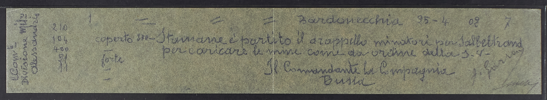 1902 - Colombaia militare - Messaggio trasportato mediante piccione viaggiatore il 25 aprile dalla colombaia di Bardonecchia ad Alessandria - Raro - Cert. Bolaffi