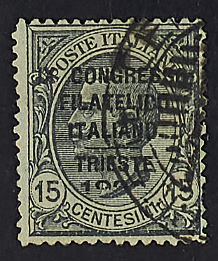 CONGRESSO FILATELICO 15 C. CON SOPRASTAMPA PARZIALMENTE MANCANTE DI "1922" USATO