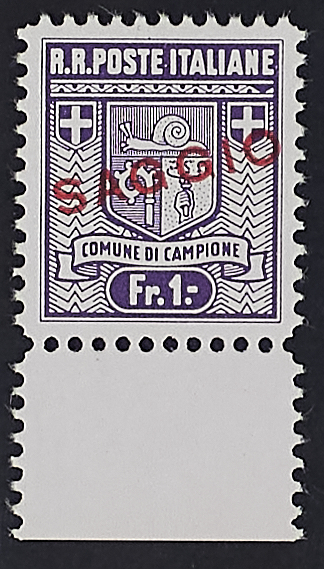 STEMMA I TIRATURA DENT. 11 1/2 - LA SERIE BORDO DI FOGLIO INFERIORE CON SOPRASTAMPA "SAGGIO"