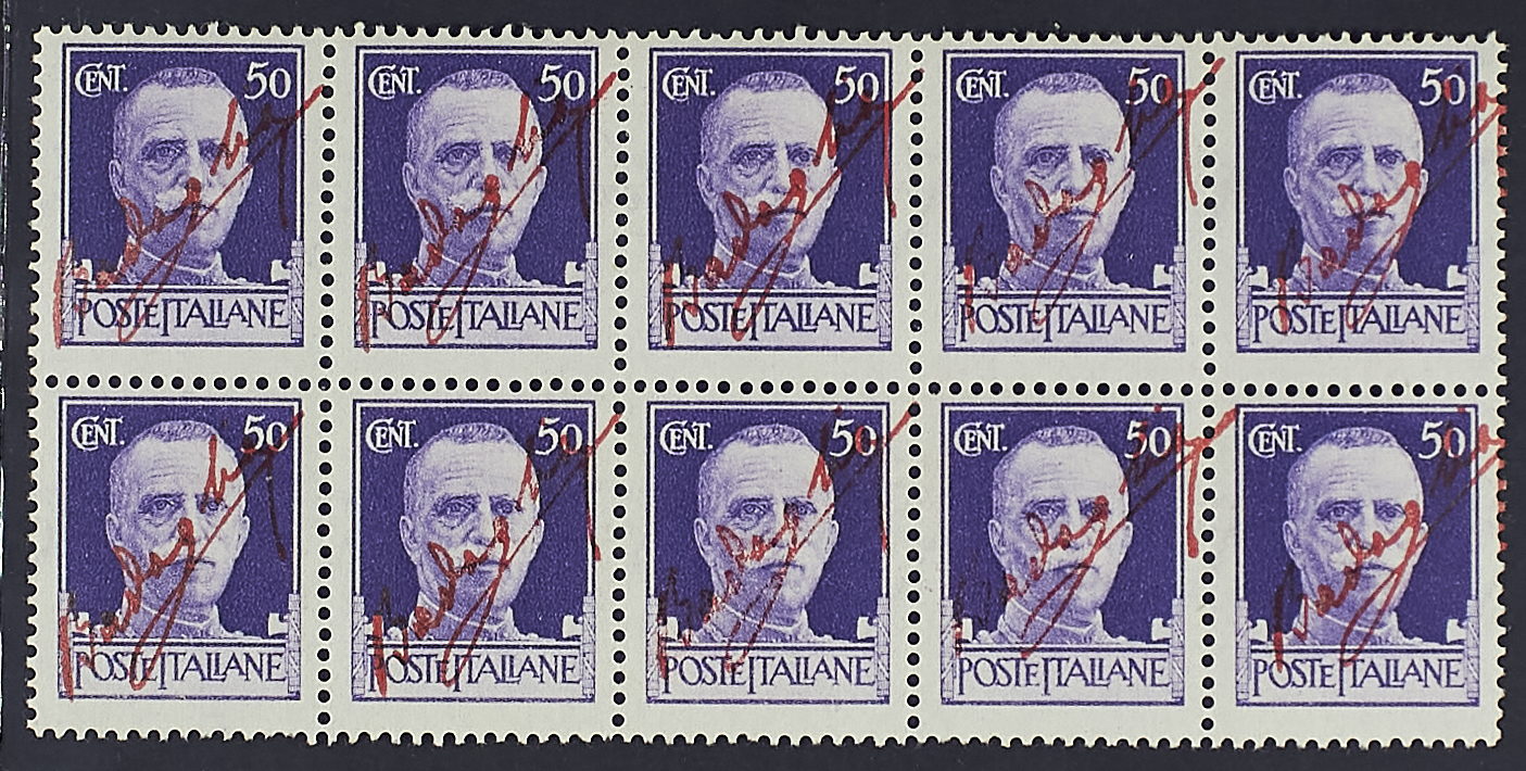 BADOGLIO 50 C. NON EMESSO BLOCCO ORIZZONTALE DI DIECI ESEMPLARI