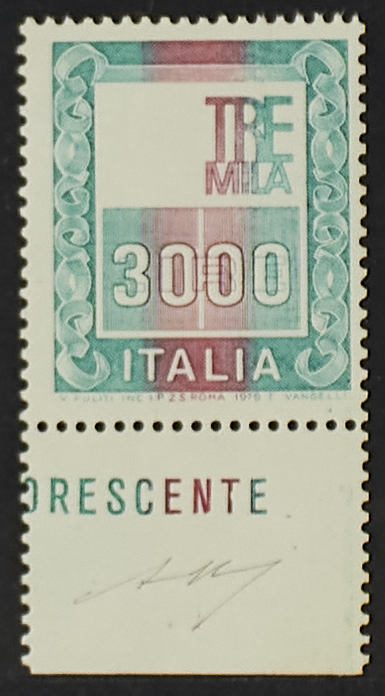 ALTI VALORI 1500 L. + 3000 L. DUE ESEMPLARI DI CUI UNO BORDO DI FOGLIO INFERIORE CON VARIETà "ITALIA SENZA TESTA" - UNITI ESEMPLARI NORMALI PER CONFRONTO