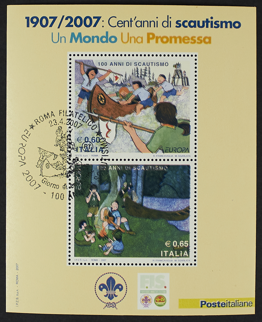 2007 - Scautismo - Il foglietto con annullo del giorno d'emissione e doppia stampa dei soli francobolli - Non segnalato