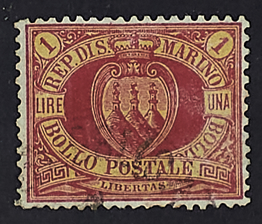 1892 - Veduta 1 L. carminio su giallo - Ottima centratura