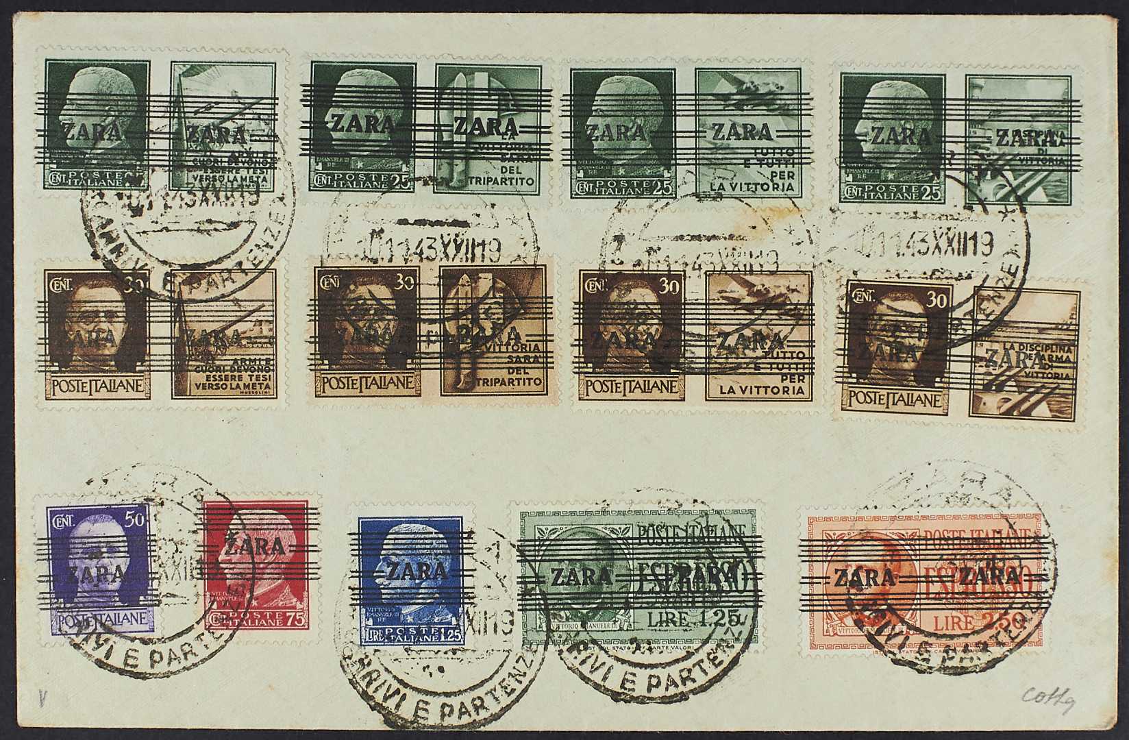 1943 - Seconda emissione - La serie su busta inoltrata a Zara il 10 novembre - Cert. Colla